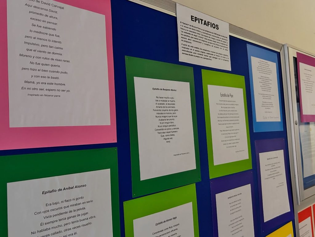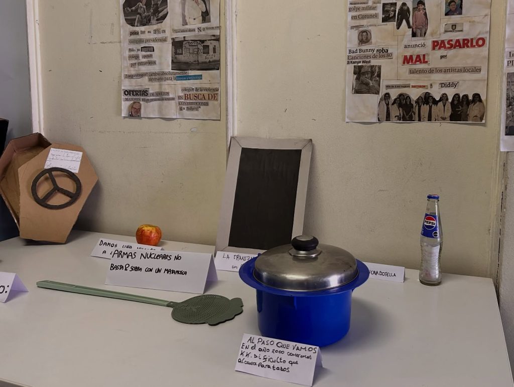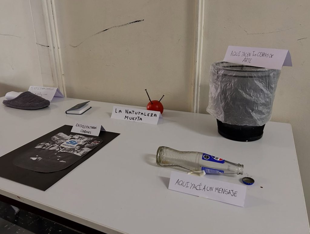 Esta muestra fue el resultado del trabajo creativo de los estudiantes del Taller de Literatura, inspirados en la exposición “Artefactos” del poeta y antipoeta chileno Nicanor Parra. Desde su espíritu provocador, irónico y crítico, los estudiantes exploraron la relación entre lenguaje, imagen y pensamiento, transformando objetos cotidianos en expresiones artísticas cargadas de sentido.